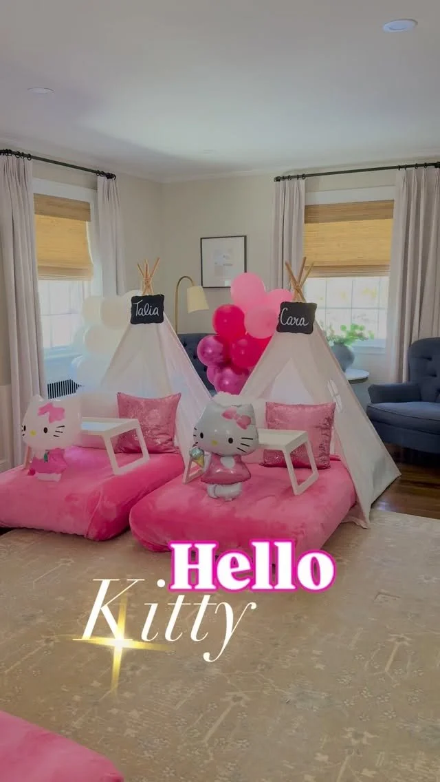 Massachusetts Sleepover Party, South Shore Glamping, Birthday Ideas, Slumber Party, #sleepoverideas #hellokittyparty #birthdayparty